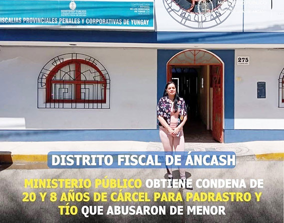 El Ministerio Público logró que el Poder Judicial dicte condenas de 20 y 8 años de pena privativa de libertad contra dos sujetos responsables de los delitos de violación, tocamientos indebidos y actos contra el pudor en agravio de una menor de 13 años en la provincia de Yungay, región Áncash.