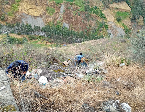 Testigos señalaron que el cuerpo del señor Hervias Mauricio fue ubicado a unos 80 metros del precipicio, mientras que su vehículo cayó unos 200 metros, a escasos metros del río Llactabamba.