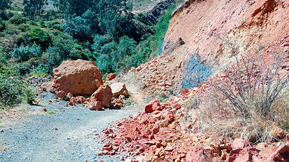 La obra presenta un retraso de 16,22 % con respecto al avance programado acumulado y 12 438 metros de la vía se encuentran en abandono, sin actividades de limpieza y recuperación de tramos. Además, en la plataforma de rodadura se observa hundimientos, grietas longitudinales y erosión provocada por agua de la quebrada, condiciones que posibilitan accidentes de tránsito al no existir la señalización adecuada de advertencia del estado de la carretera, alerta el Informe de Hito de Control n.° 011-2025-OCI/0341-SCC.