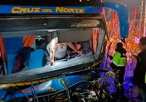 El primer accidente de tránsito ocurrió a las 04:00 horas de hoy viernes 3 de octubre en la carretera Panamericana Norte, a la altura de los humedales de Villa María, en el distrito de Chimbote. Un ómnibus de la empresa Cruz del Norte colisionó violentamente contra un auto particular, luego que este último invadiera el carril contrario, según informó el serenazgo de la Municipalidad Provincial del Santa.