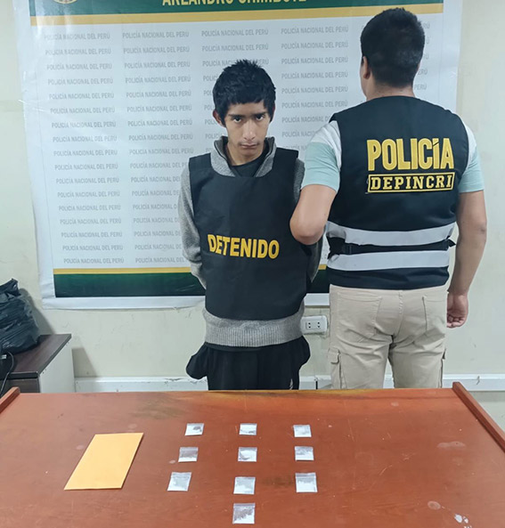 La Policía Nacional del Perú, a través del Área de Investigación Antidrogas de la DEPINCRI-Chimbote, detuvo a un joven de 18 años por estar presuntamente involucrado en el delito de tráfico ilícito de drogas en agravio del Estado.