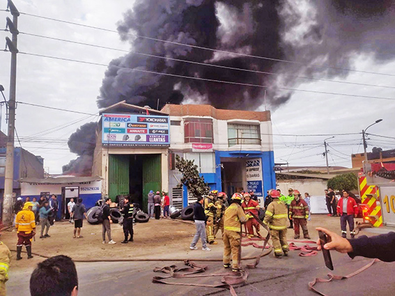 - Un hombre resultó herido tras un incendio registrado en un almacén de llantas ubicado en la avenida Enrique Meiggs, en la intersección con el jirón Callao.