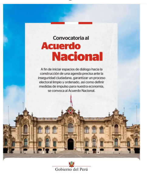 «A fin de iniciar espacios de diálogo hacia la construcción de una agenda precisa ante la inseguridad ciudadana, garantizar un proceso electoral limpio y ordenado, así como definir medidas de impulso para nuestra economía, se convoca al Acuerdo Nacional», señala.