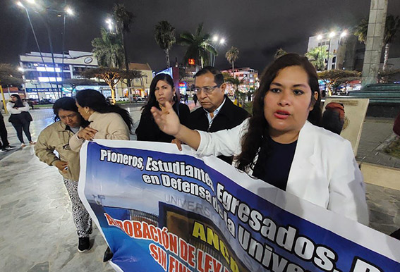 Con júbilo egresados, un docente y trabajadores despedidos injustamente de la universidad San Pedro que lucharon por la ley de universidades asociativas sin fines de lucro que no fueron licenciadas por la Sunedu, celebraron la firma de la ley que favorece a estos centros de estudios superiores del país.