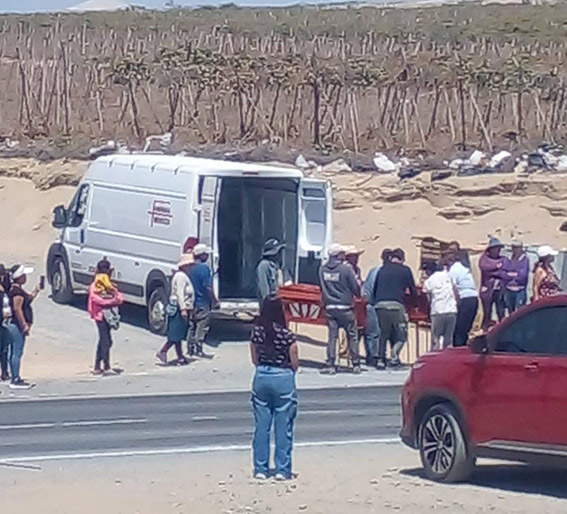 Los familiares y amigos de los hermanos Isidro y Eleodoro Chávarry Reyes, con los féretros de ambos realizaron un plantón en el cruce de la Vía de Evitamiento a la altura del AH, Ríos Salcedo en Nuevo Chimbote, lugar donde perdieron la vida en un trágico accidente.