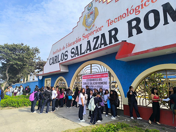 Una jornada de protesta protagonizaron los alumnos del Instituto Superior Tecnológico Público “Carlos Salazar Romero” de Nuevo Chimbote, quienes se encadenaron en la puerta principal de la institución exigiendo la destitución del director y de varios funcionarios administrativos.
