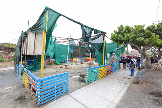 Desde primeras horas del día, el equipo operativo de la Municipalidad Provincial del Santa ejecutó el desmontaje de la estructura que ocupaba el área verde, cumpliendo con el pedido de los dirigentes vecinales.
