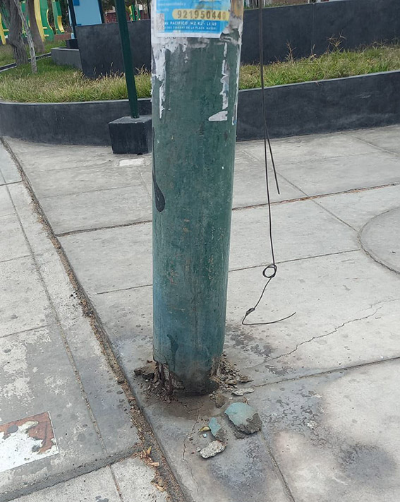 Vecinos de la urbanización Cáceres Aramayo, en Nuevo Chimbote, manifestaron su preocupación por el peligro que representan más de diez postes que se encuentran en pésimas condiciones. Las estructuras, muchas de ellas con bases corroídas y dañadas, podrían colapsar en cualquier momento.