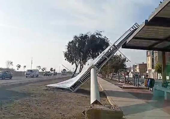 Un gran susto vivieron los vecinos y conductores que transitaban por la avenida La Marina, a un costado de la Panamericana Norte, en el distrito de Nuevo Chimbote, luego de que un panel publicitario cayera repentinamente.