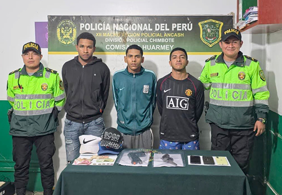 Los investigados, identificados como Endy Ivanovi Gusti Parra (23), Jhonayker José Mata Naveda (19) y Keiner Jerry Nogales Alvarado (21), fueron capturados durante un megaoperativo policial denominado “Impacto”, ejecutado en la provincia de Huarmey.