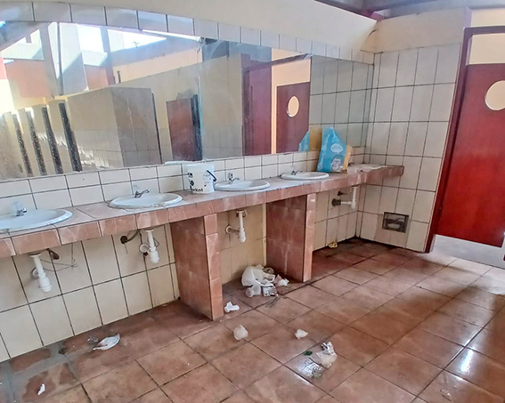 Los servicios higiénicos están para usarlos y depositar los papeles en su lugar, pero no para dejarlos regados y peor aún, tirar las papeleras por el suelo.