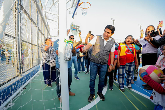Después de más de trece años de espera, los vecinos del A.H. Tierra Prometida, en los Pueblos del Sur de Nuevo Chimbote celebraron la inauguración de un moderno complejo deportivo que ahora se convierte en un espacio seguro, inclusivo y adecuado para la recreación de toda la familia.