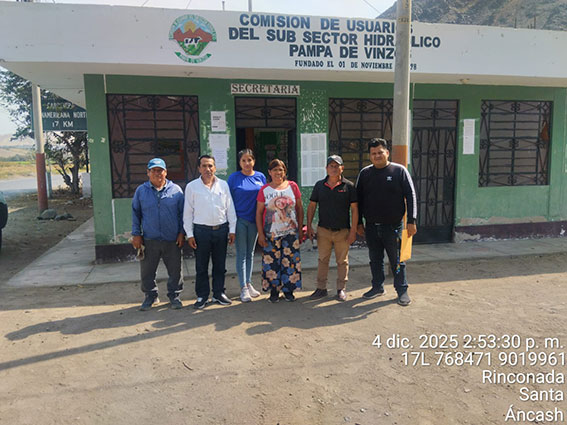 La Comisión de Usuarios Pampa de Vinzos recibió la visita técnica que marca el inicio de una nueva etapa para el mantenimiento de su infraestructura hídrica. Hasta la zona llegaron Mateo Pacheco Constantino, profesional contratado por MIDAGRI para el seguimiento de los PMIRM, y el Ing. Miguel Roberto Núñez Núñez, especialista de recursos hídricos del ALA Santa Lacramarca Nepeña de la AAA Huarmey Chicama, cuya participación fue clave para brindar orientación técnica directa y precisa.