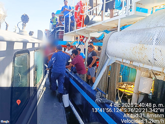 La Capitanía de Puerto de Pisco ejecutó una rápida evacuación médica en favor de un tripulante de la embarcación pesquera E/P “TASA 21”, luego de ser alertada sobre un accidente ocurrido a bordo mientras se desarrollaban labores de pesca frente a las costas de Pisco.