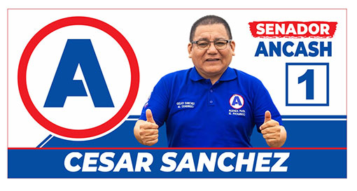 César Sánchez Ulloa postula al Senado en el denominado Distrito Electoral Múltiple, es decir para la Región Áncash, por el partido Alianza Para el Progreso. Empresario del rubro pesquero que ahora incursiona en política, donde es muy activo sobre todo en la pesca artesanal. También ha sido directivo del club José Gálvez FBC, habiendo asumido la presidencia en determinado momento. Se encuentra muy vinculado al fútbol.
