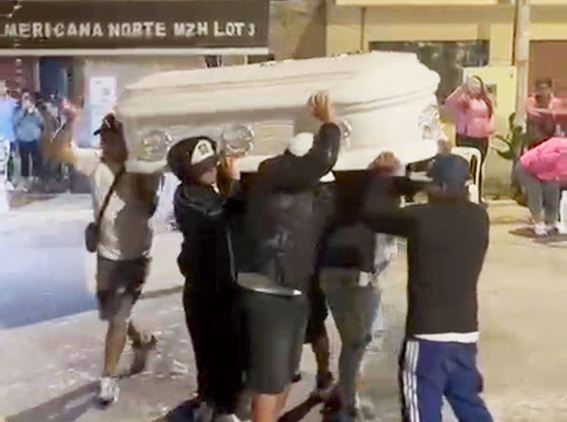 Familiares, amigos y vecinos se reunieron en la avenida Perú, a la altura del parque Mariátegui, frente a la institución educativa Artemio del Solar, para despedir a Gian Carlos Meléndez Ortega, joven de 21 años atacado a balazos por sicarios, cuyo velorio congregó a decenas de personas que acudieron a darle el último adiós.