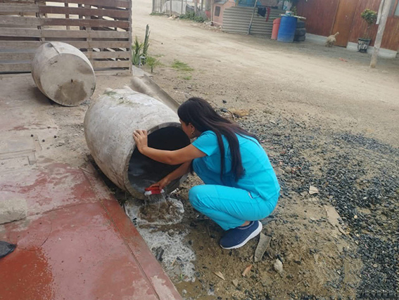 Durante las visitas se brinda orientación a las familias sobre prácticas preventivas fundamentales, como el lavado, escobillado y tapado de los depósitos de agua. Además, recuerda la importancia de mantener estos recipientes en condiciones adecuadas.