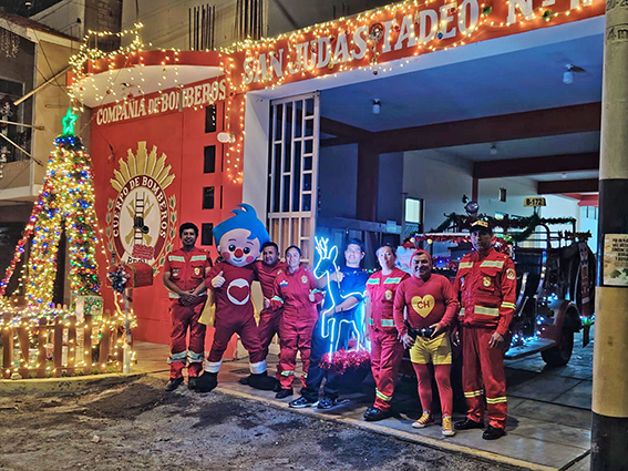 La Compañía de Bomberos Voluntarios San Judas Tadeo, ubicada en la urbanización La Libertad, en Chimbote, realizó ayer su tradicional recorrido navideño por las principales calles del sector usando su trineo móvil.