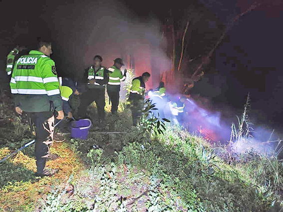 Gracias a la rápida y coordinada intervención de las autoridades locales y policiales, el incendio forestal fue controlado y totalmente extinguido a las 10:05 p. m., evitando su propagación hacia otras zonas.