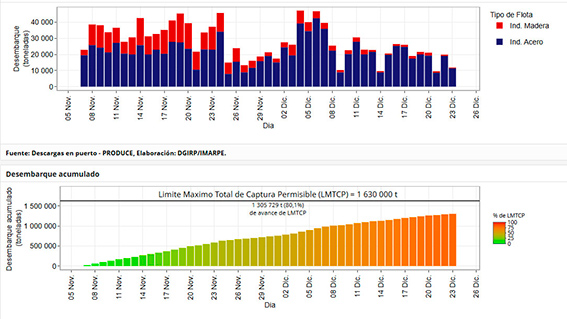 Al 23 de diciembre después de 46 días de pesca de anchoveta según Imarpe se han capturado el 80.10% de la cuota que otorgó Produce en la segunda temporada de pesca industrial. Por estos días la actividad está suspendida por las fiestas navideñas.