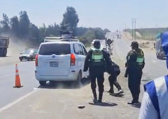 El chofer de una minivan pretendió eludir el control de la Sutran y de la Policía Nacional tratando de huir velozmente por la carretera, sin embargo, la rápida reacción policial evitó que concrete su huida y terminó con su vehículo con una llanta desinflada.