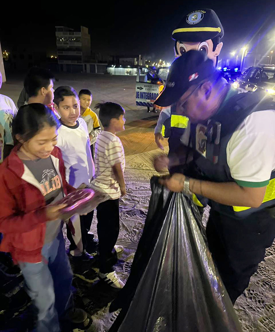 En Nuevo Chimbote, los agentes del serenazgo se organizaron de manera voluntaria para recolectar regalos, los cuales fueron destinados a menores de familias de escasos recursos, quienes recibieron los obsequios con evidente emoción.