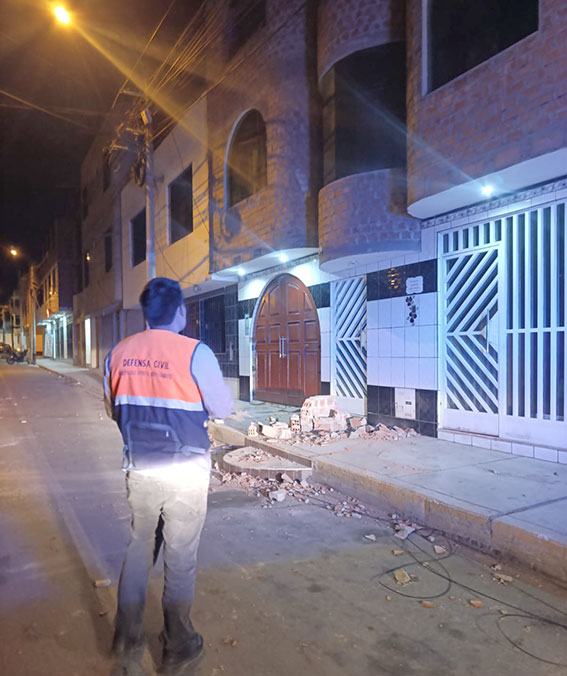 La Municipalidad de Nuevo Chimbote reporto que de un inmueble de la Urb. Bellamar cayo un bloque de ladrillos del tercer piso de dicha vivienda y lo mismo sucedió del hostal Zeus ubicado en Urb. José Carlos Mariátegui, durante el sismo de anoche, felizmente sin daños personales.