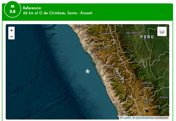 Minutos después, a las 19:25:12 horas, el IGP reportó un quinto sismo de magnitud 3.8, también localizado a 66 kilómetros al oeste de Chimbote, confirmando la persistencia de la actividad sísmica en la zona.