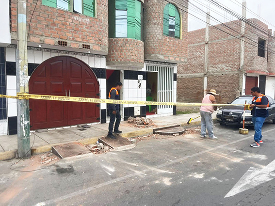 El equipo de la Subgerencia de Gestión del Riesgo de Desastres y Defensa Civil realizó el acordonamiento con cintas de seguridad en las zonas donde se registró desprendimiento de ladrillos, producto del sismo de magnitud 6.0 ocurrido la noche del sábado.