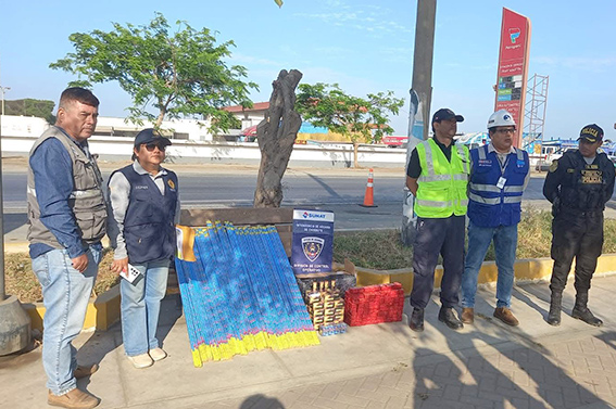 Paralelamente, se desarrollaron jornadas de sensibilización en el Mercado Modelo de Chimbote y zonas aledañas a paraderos de la Comisaría San Pedro, donde personal de SUCAMEC y del Ministerio Público brindó charlas informativas y distribuyó material educativo sobre los riesgos del uso indebido de pirotécnicos.