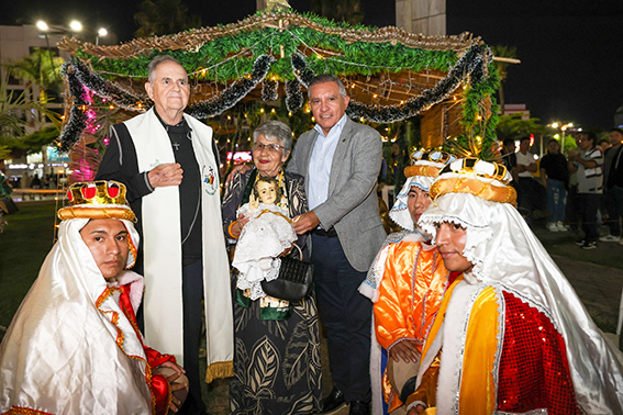 La autoridad municipal estuvo acompañada de su señora madre. Ambos se acercaron al nacimiento para recoger al Niño Jesús, en una solemne ceremonia litúrgica presidida por el padre Juan Davis Weed.
