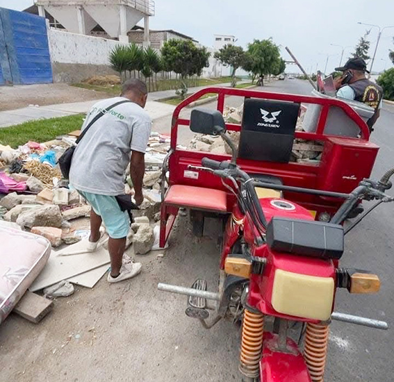 En el lugar, se verificó que una motocarguera se encontraba depositando residuos sólidos en un espacio no autorizado, atentando contra el orden y la limpieza de la vía pública. Ante esta situación, se procedió de inmediato a la aplicación de la papeleta de infracción administrativa correspondiente.