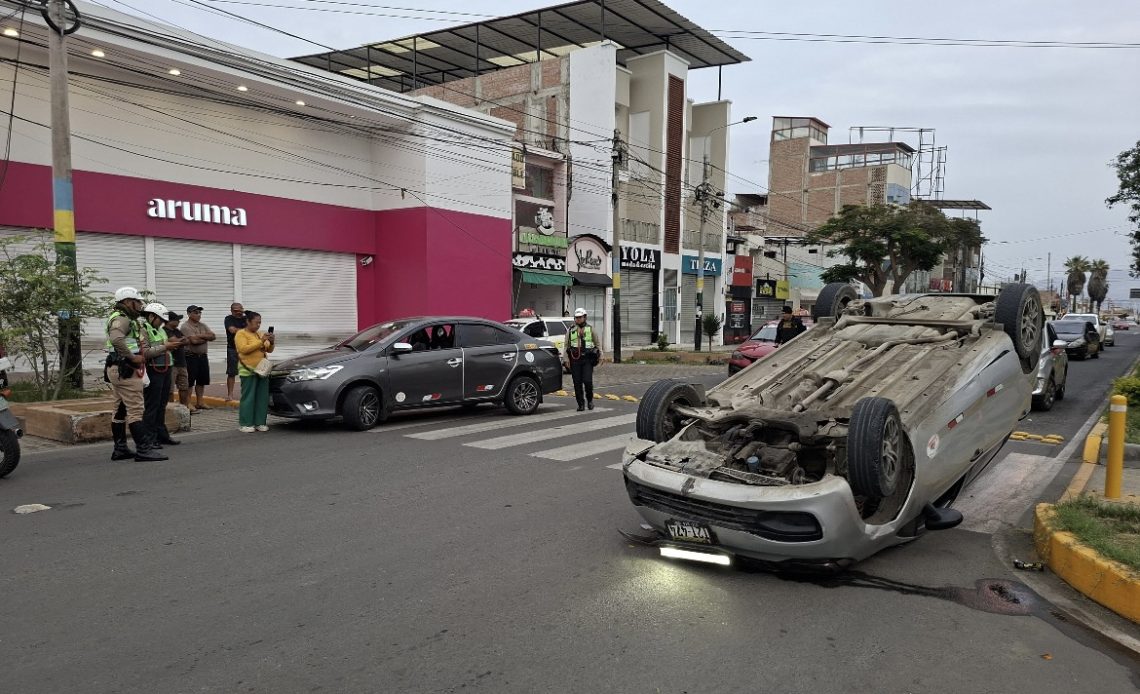 Un aparatoso accidente de tránsito se registró la mañana de hoy, martes 13 de enero, en la avenida Pacífico, en el distrito de Nuevo Chimbote, dejando como saldo dos personas heridas y cuantiosos daños materiales.