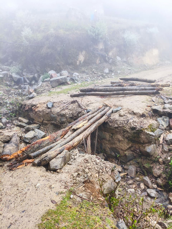 El colapso parcial de la estructura afectó el tránsito vehicular en la zona, generando dificultades para el desplazamiento de los pobladores y el traslado de productos agrícolas.