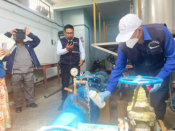 Durante la toma de muestras estuvieron presentes representantes de la Red de Salud Pacífico Sur y la jefa zonal de la Superintendencia Nacional de Servicios de Saneamiento (Sunass), Madeleyne Guanilo Lecca.