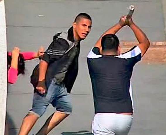 Según el registro fílmico, dos sujetos persiguen a la mujer por la vía pública, siendo esta agredida con golpes por uno de ellos. En tanto, el segundo varón corre detrás del presunto agresor portando un palo, aparentemente con la intención de impedir que continúe el ataque.