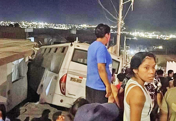 El siniestro ocurrió en la esquina de las calles Nilo y Huascarán, donde el vehículo se precipitó y cayó sobre una vivienda, causando destrozos materiales significativos en la estructura.