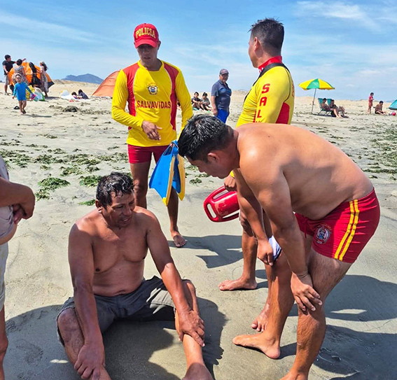 Al advertir el peligro, los efectivos de Salvataje PNP Chimbote intervinieron de manera inmediata y oportuna, logrando poner a salvo al afectado y trasladarlo hasta la orilla, donde se le brindaron los primeros auxilios básicos.