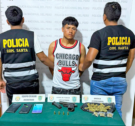 El intervenido fue identificado como David Dany Carbajal Espinoza (30). Durante el registro personal se le halló tres bolsas plásticas tipo ziploc conteniendo hierbas secas con características similares a cannabis sativa (marihuana), así como un equipo celular marca Huawei modelo Y9s y otros objetos vinculados al presunto ilícito.