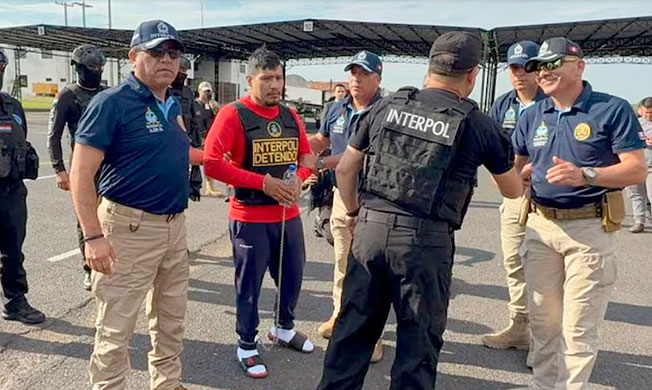 Erick Moreno Hernández, alias “El Monstruo”, llegó esta tarde sobre las 6.20 pm a la sede de la aviación policial, después de haberse cumplido el proceso de extradición para que responda ante la justicia peruana por graves delitos vinculados al crimen organizado.