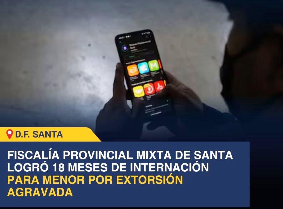 La decisión fue obtenida por la Fiscalía Provincial Mixta de Santa, a través de la fiscal adjunta provincial Isabel Mendoza Rodríguez, y dictada por el Tercer Juzgado de Familia de Santa, al hallarse responsable al adolescente identificado con las iniciales B.F.A.V., por la infracción a la ley penal de extorsión agravada en grado de tentativa.