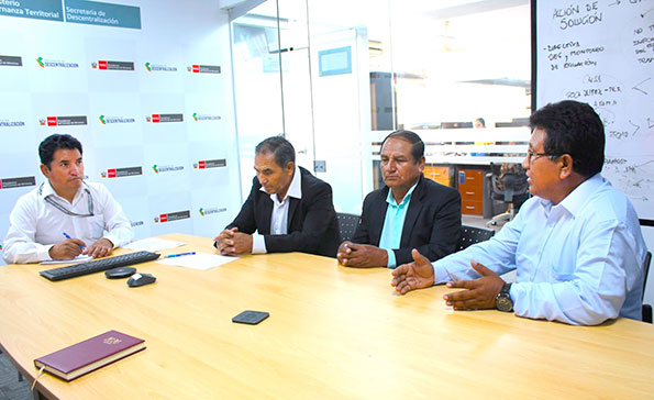 Jaime Vásquez Cubas, alcalde del centro poblado de Cascajal y anexos, acompañado de sus colegas burgomaestres Francisco Pérez y Hernán Mendez, de Villa Hermosa y de Cachipampa, respectivamente, expusieron la problemática de sus localidades ante ejecutivos de la Presidencia del Concejo de Ministros.