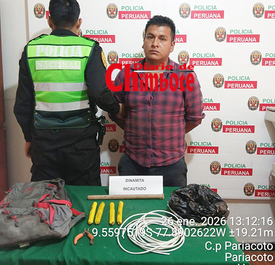 Efectivos de la Policía Nacional del Perú, pertenecientes a la Comisaría Rural PNP Pariacoto, intervinieron y detuvieron a un sujeto por la presunta comisión del delito contra la seguridad pública, en la modalidad de tenencia ilegal de explosivos.