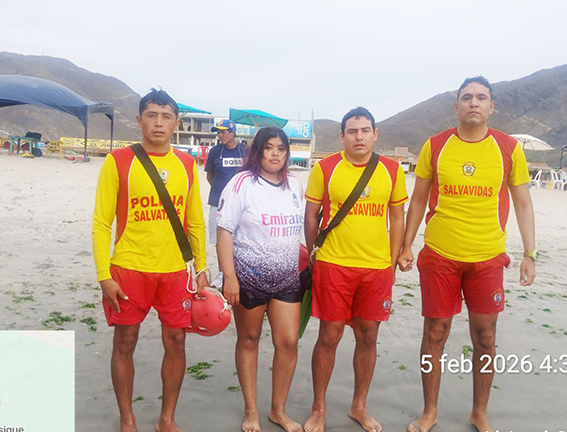 Un nuevo rescate se registró en la playa Vesique, en el distrito de Samanco, donde efectivos de la Policía Nacional lograron salvar la vida de una joven que fue arrastrada por la fuerte corriente marina mientras se encontraba bañándose en el balneario.