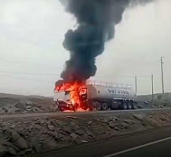 Un camión cisterna se incendió esta mañana en el kilómetro 413 de la carretera Panamericana Norte, a la altura del distrito de Samanco, provincia del Santa, región Áncash.