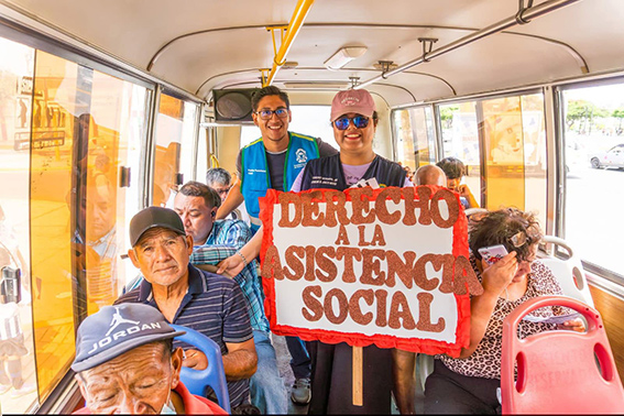 Como parte de la jornada, los participantes salieron a las calles portando carteles y mensajes, exigiendo respeto hacia los adultos mayores, especialmente en los centros de salud, entidades bancarias y unidades de transporte público.