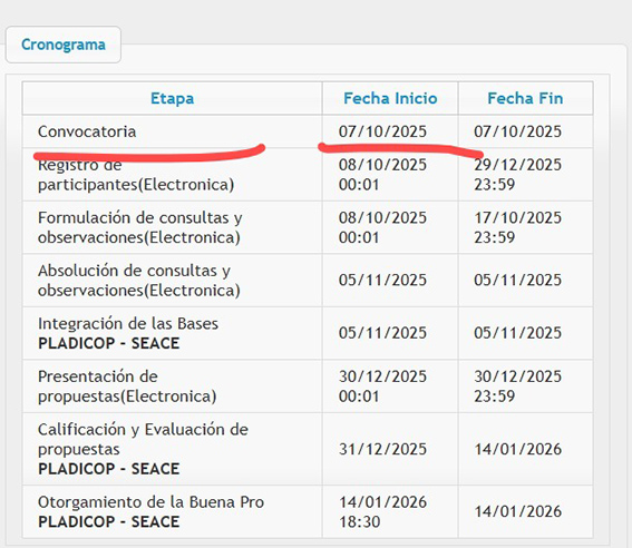 La convocatoria de la licitación LP_ SM- 5 -2025 – GRA/SRP/C-1 se realizó el 7 de octubre del 2025. Según los documentos obtenidos en registros públicos, el 17 de setiembre del 2025 se renueva el gerente general de Constructora Edmara SAC . Es decir Harold López Robles deja el cargo y asume Sandra Minaya Flores.