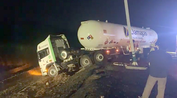 En la carretera Panamericana Norte altura del cruce de Samanco un vehículo cisterna de gas se despistó cayendo a una hondonada generando pánico entre transportistas que circulaban por la vía que temían una explosión de la unidad lo que felizmente no ocurrió debido a que su depósito estaba vacío.