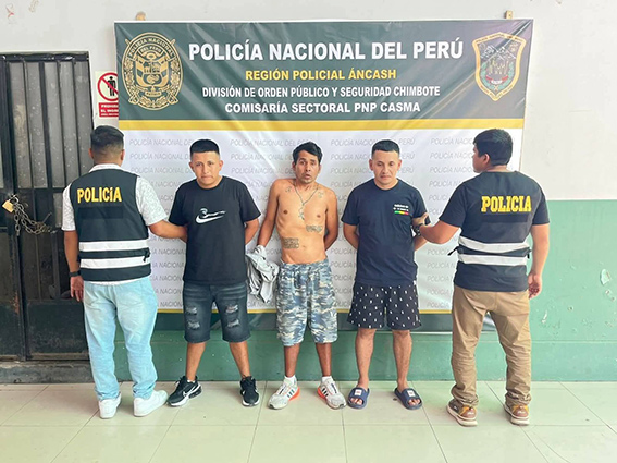 La intervención se realizó en los alrededores de la Plaza de Armas de Casma, tras información confidencial que alertaba sobre su llegada a la ciudad. Los sujetos se movilizaban en un vehículo Kia Río (placa BLL-542) cuando fueron interceptados por la Policía.