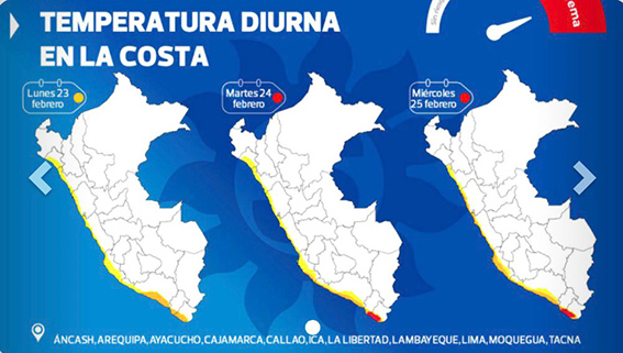 La costa de Áncash registrará un incremento de la temperatura diurna desde ayer lunes 23 hasta el miércoles 25 de febrero, con valores que oscilarán entre los 30°C y 37°C, informó el Servicio Nacional de Meteorología e Hidrología del Perú (Senamhi).